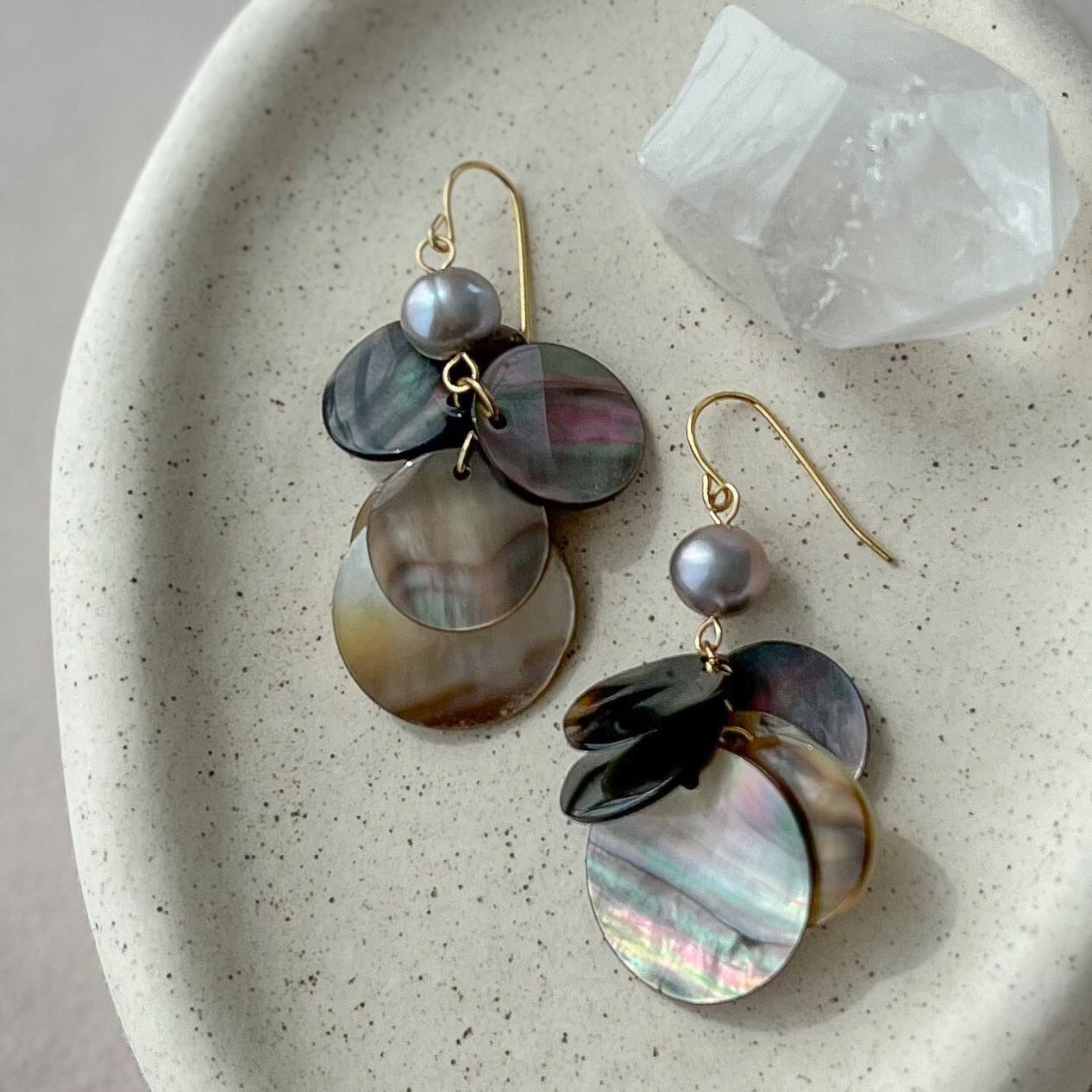 ~軽やかに揺れる、ブラックシェルの大人ピアス~