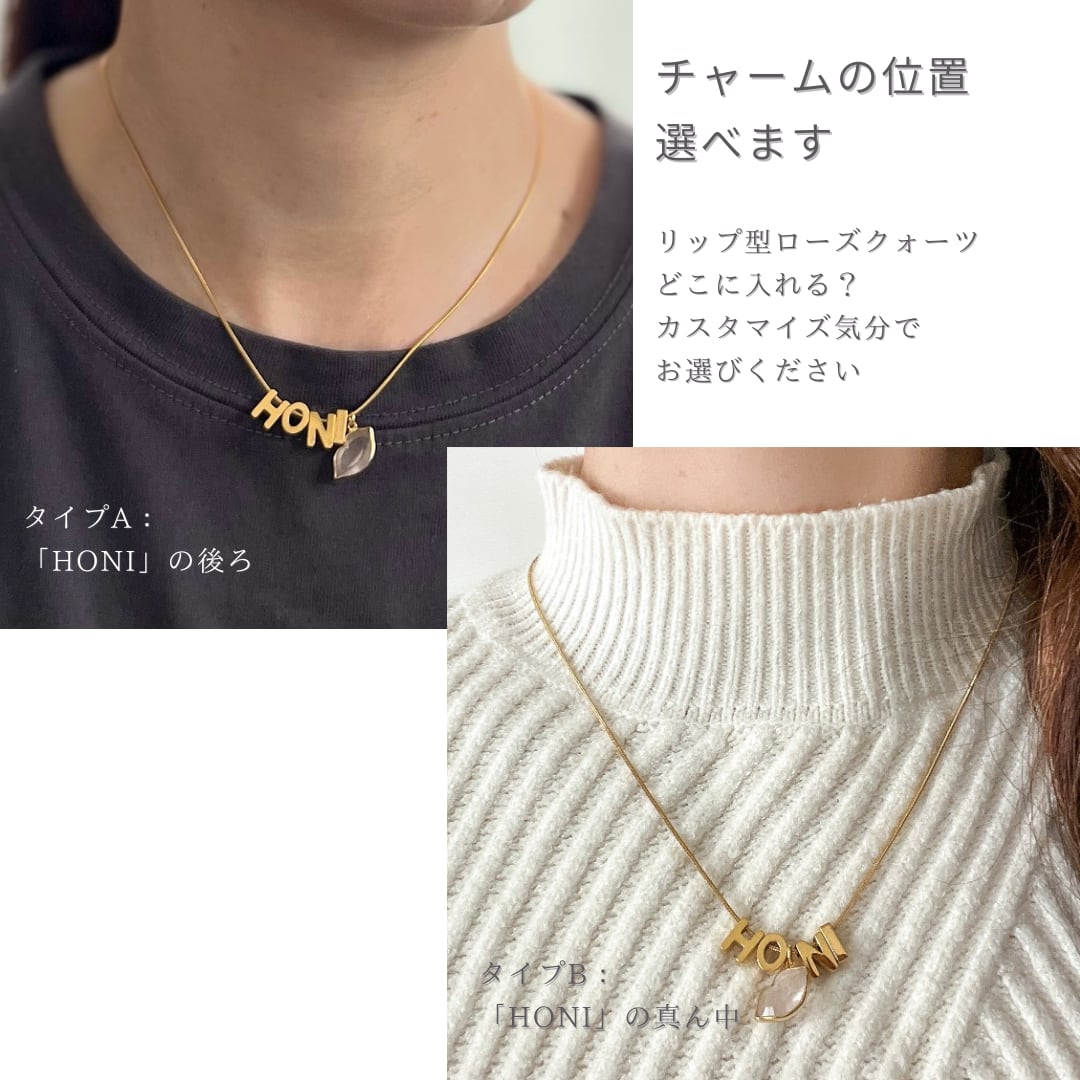 ハワイ語 HONI リップ ローズクォーツ ネックレス サージカルステンレス アレルギー対応 お洒落 個性的 カジュアル デイリー